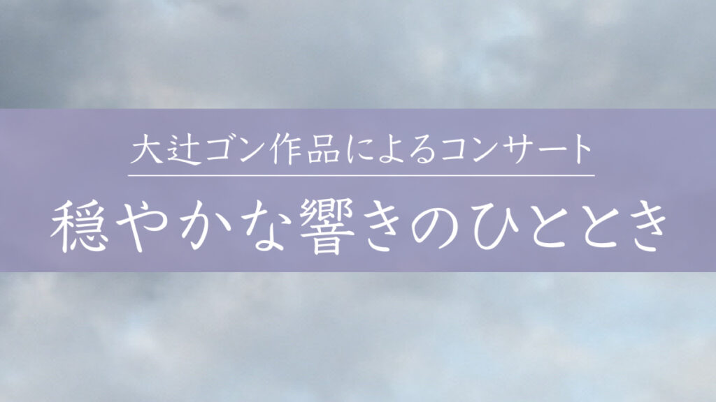 | 大辻ゴン作品によるコンサート 5月10日、西宮プレラホールにて、満席のお客様に囲まれ、コンサートは盛り上がりの中、無事終了いたしました。ご来場いただいた皆さまに、心より御礼申し上げます。         「穏やかな響