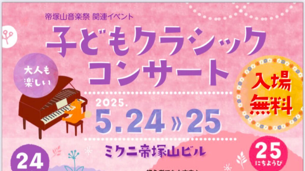 第37回帝塚山音楽祭にて、「みんなで一緒にピアノを弾こう!」というワークショップを行います。 5月25日(日)「ミクニ帝塚山ビル」にて、4回にわたってピアノ連弾体験ワークショップを行います。 ①・12:00 〜 ②・13